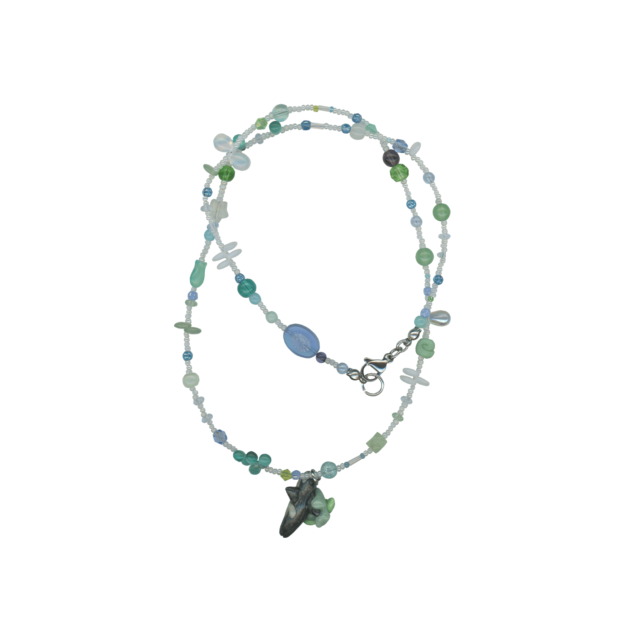 made with polymer clay, glass beads, plastic beads, stainless steel parts and glazed with a water based varnish